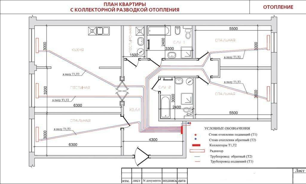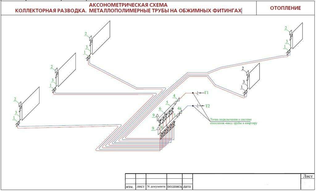 - Схема отопления, коллекторная разводка труб