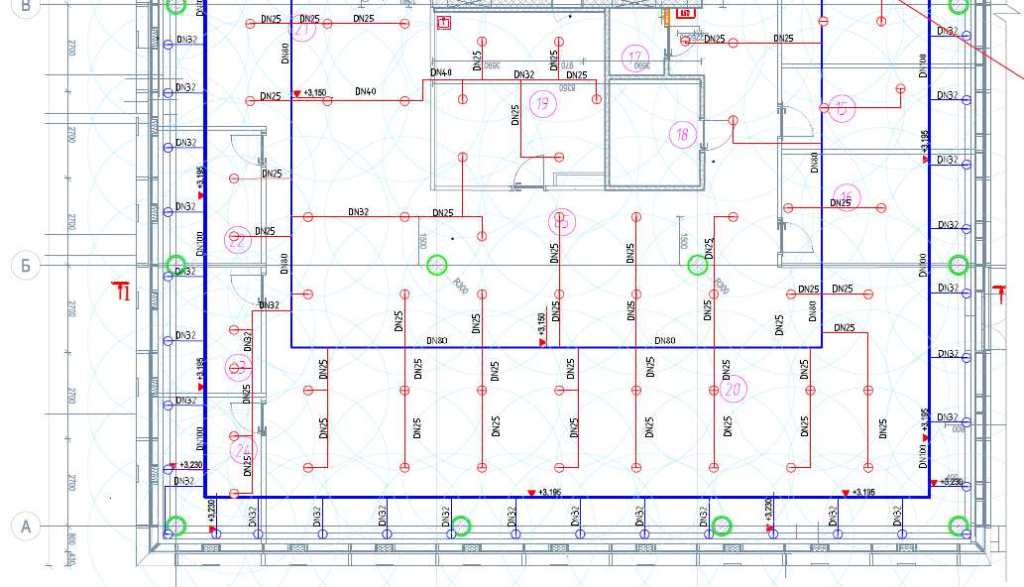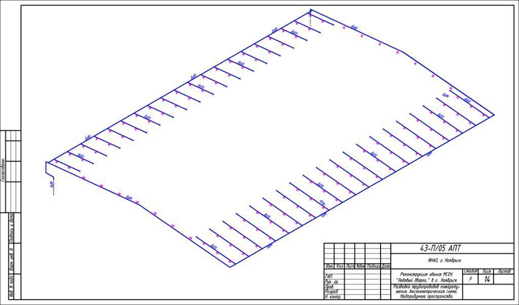 Для примера возьмем проект спринклерной системы пожаротушения для торгово-развлекательного комплекса.