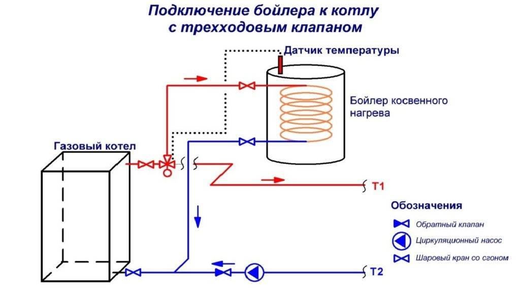 Подписывайтесь на получение новых статей. Для этого мы можем перекрыть контур отопления и оставить работать только бойлер косвенного нагрева. Нагрузка токовая, как правило, не менее 10 А. Такие устройства подключаются к отопительным системам, в которых используются котлы, не оснащенные автоматикой. Для подключения придется систему отопления выполнить в два контура, первый — для генерации тепла в доме, второй, имеющий больший приоритет, — для бойлера то есть если в агрегате температура воды упадет, то трехходовый клапан переключит горячую воду в контур отопления, пока не вернется нужная температура.