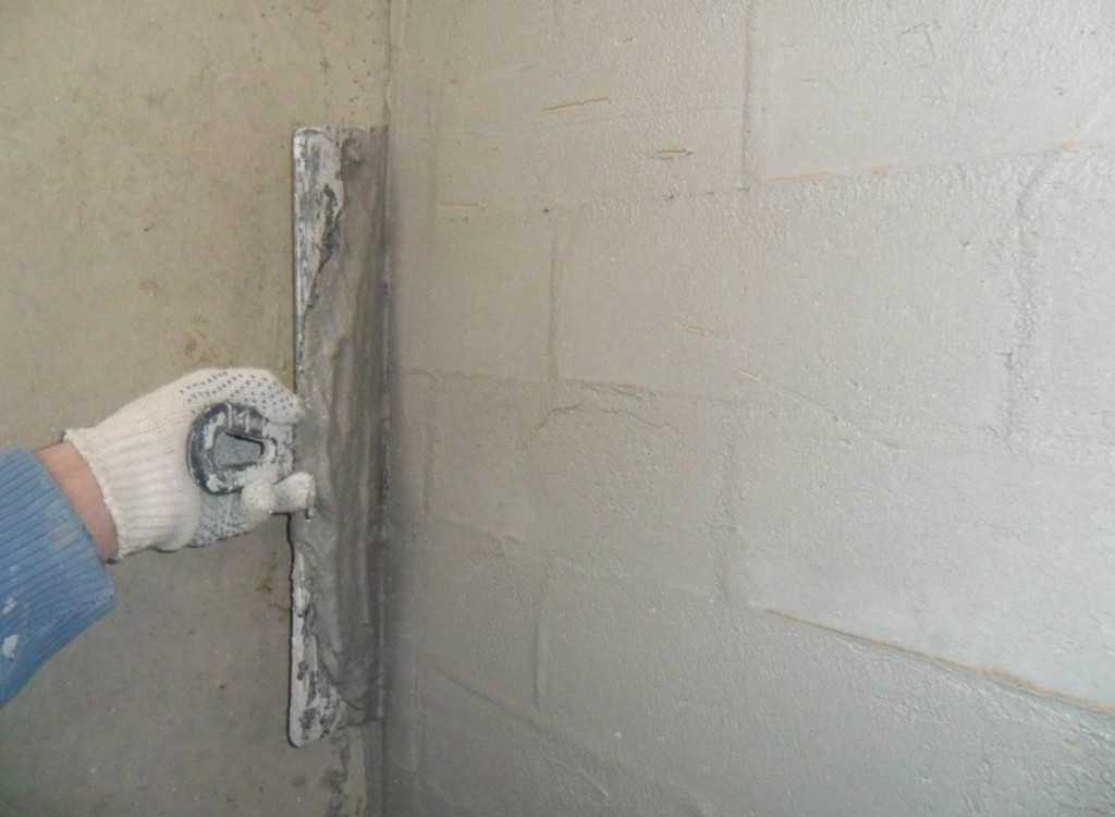 - Если имеются крупные щели или же трещин немного, то замажьте их локально. Сначала поврежденное место смачивайте водой, затем заполняйте пустоты раствором. Излишки смеси размазываются по поверхности.