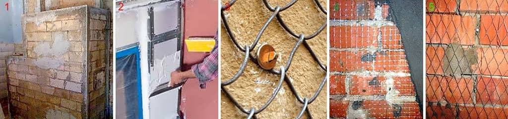 - Ещё одна хитрость: получить шероховатую поверхность, добавить прочности раствору всегда можно при помощи стекловолоконной сетки. Жидкой смесью её крепят к кладке;