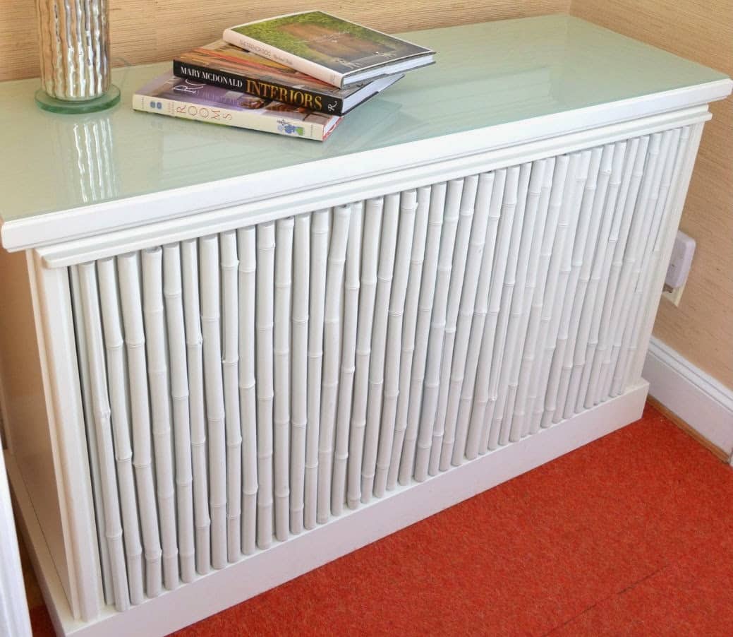 – самое практичное решение, позволяющее не только задекорировать отопительный прибор, но и получить дополнительный предмет мебели. Например, короб может служить полочкой, подставкой и даже частью мебельного гарнитура. Главное – не сильно заставлять верхнюю часть экрана различными предметами.