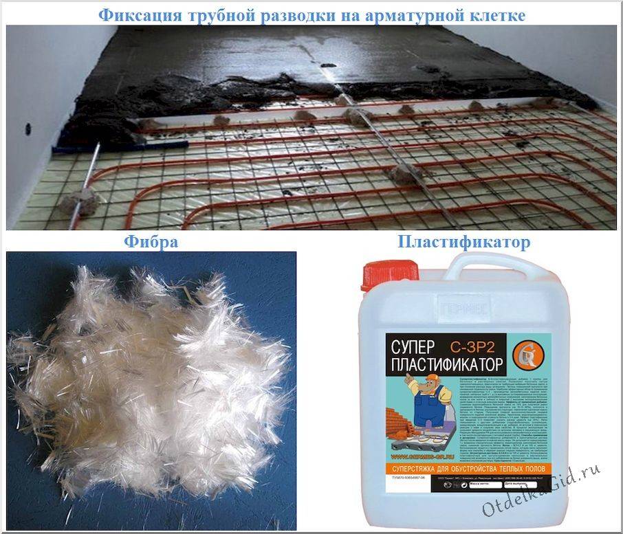 - пластификатор и фиброволокно (прочитайте: «Применяем фиброволокно для стяжки — особенности «).