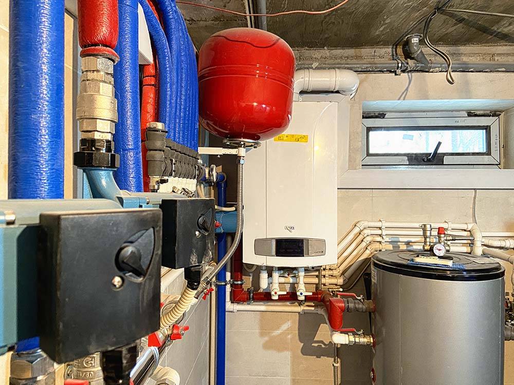 - До и после отопительного котла;