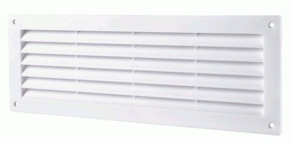 4) Жалюзийная. Данный тип решетки можно использовать как для вентиляционных отверстий, систем кондиционирования, так и для радиаторов отопления. Горизонтальные металлические ламели в таких решетках пристыковываются к вертикальным направляющим, далее изделие сваривается с рамкой. В рамке делаются отверстия для крепежа.