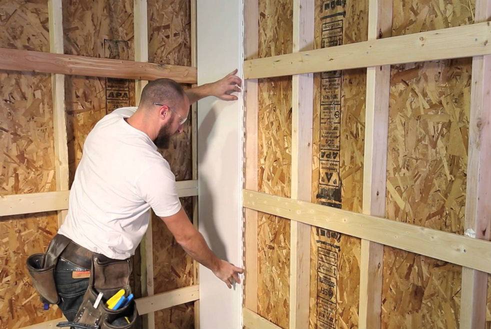 - Установить обрешетку из металлического или деревянного материала. Монтаж направляющих начать вдоль стены, слева направо.