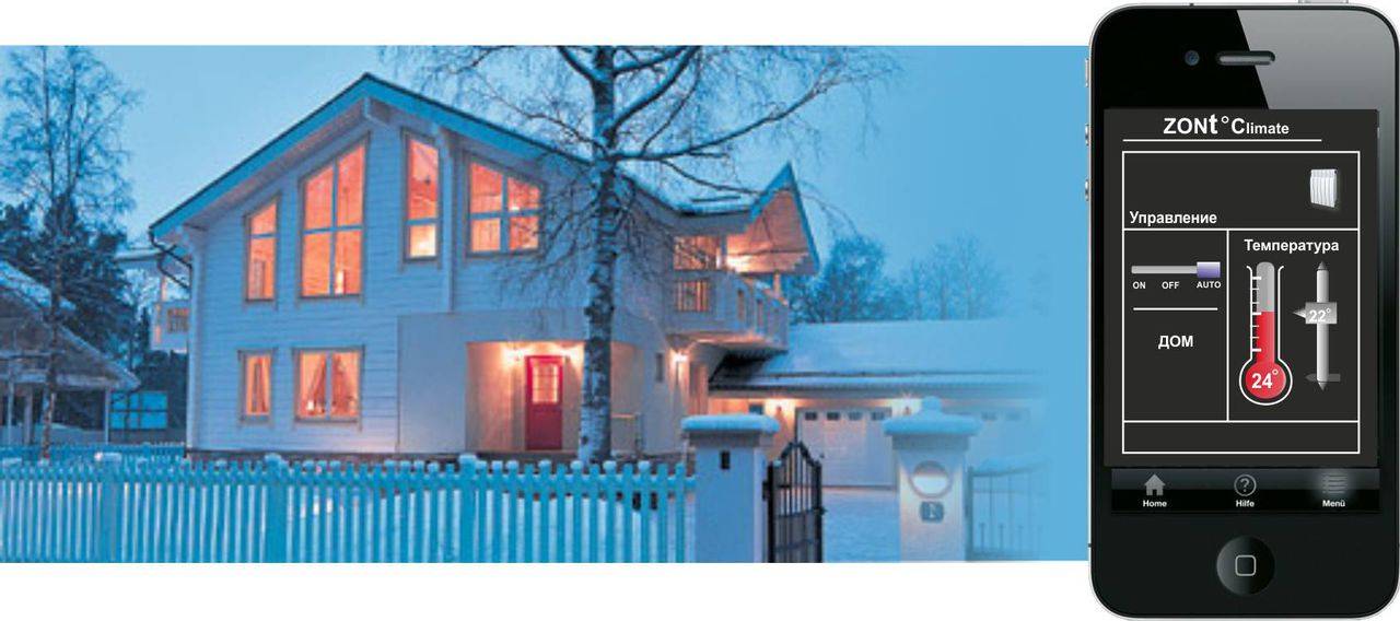 посредством SMSкоманд или прямой контроль с помощью мобильного приложения. Представителем такой системы является контроллер GSM–Climate компании “ЭВАН”. Вообще существует множество аналогичных контроллеров, среди них можно отметить контроллеры ГАЛАН-GSM компании “ГАЛАН”. Этот контроллер позволяет дистанционно контролировать, посредством SMS команд и имеет небольшой функционал охранной системы. А вот представитель контроллеров Teplocom–GSM от компании “БАСТИОН” позволит организовать простую автоматическую регулировку температуры системы отопления в доме, а также сможет известить о затоплении котельной и срабатывании сигнализации или просто открытии двери. Управление также осуществляется посредством SMSкоманд.