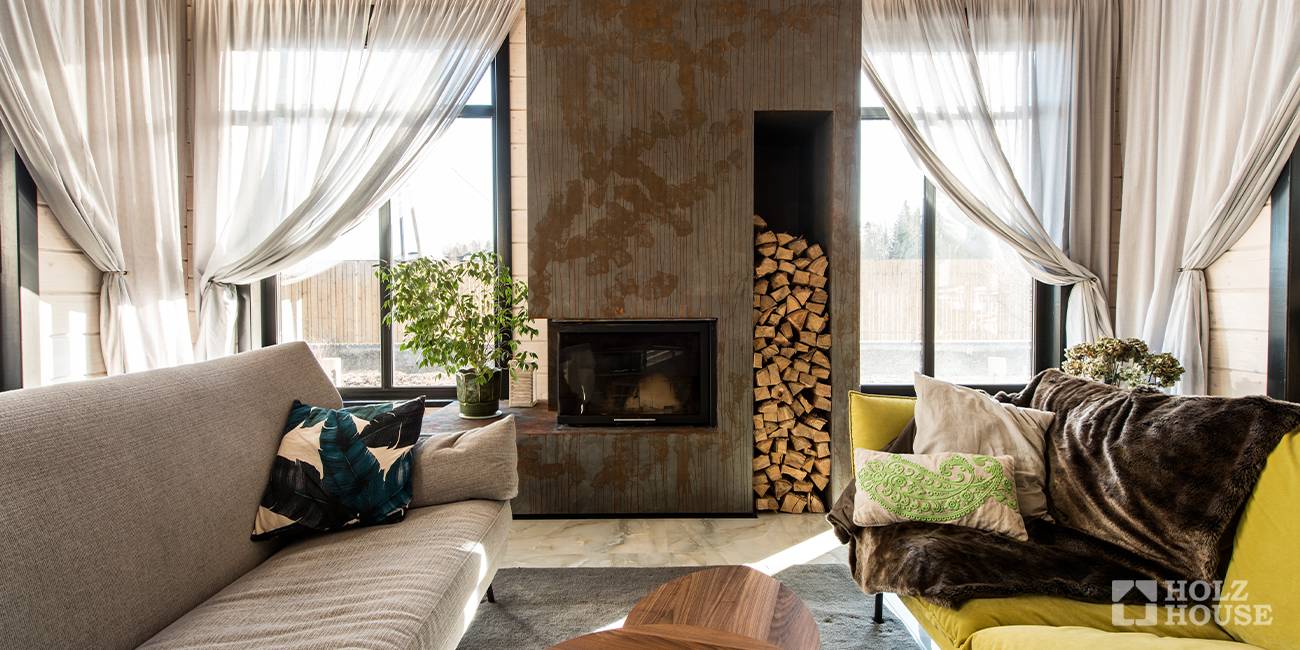 - Изнутри дом сохранит свой колорит – бревна подчеркнут особую атмосферу интерьера, сделают его уютнее.