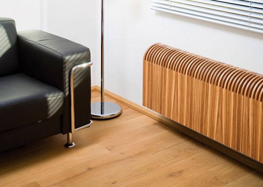 К бюджетным моделям можно отнести радиаторы из МДФ и ХДФ плит, имитирующие природный рисунок натуральной древесины. Они имеют эстетичный внешний вид, не подвержены деформации при температурных перепадах и не боятся влаги. Изделия различаются формой и оттенками, они могут контрастировать или совпадать с цветовой гаммой интерьера. Часто плиты МДФ и ХДФ применяют в качестве основы для деревянных изделий, удешевляя их стоимость.