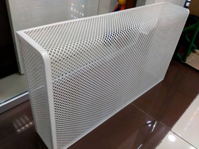 Среди неоспоримых его преимуществ – отличная теплопроводность. Поэтому его установка не снизит теплоотдачу радиатора. Из металла создают элегантные изделия разнообразной конструкции: сплошные экраны, мелкоячеистые или ажурные решетки. Для их изготовления могут быть использованы 2 метода: штамповка или сварка.