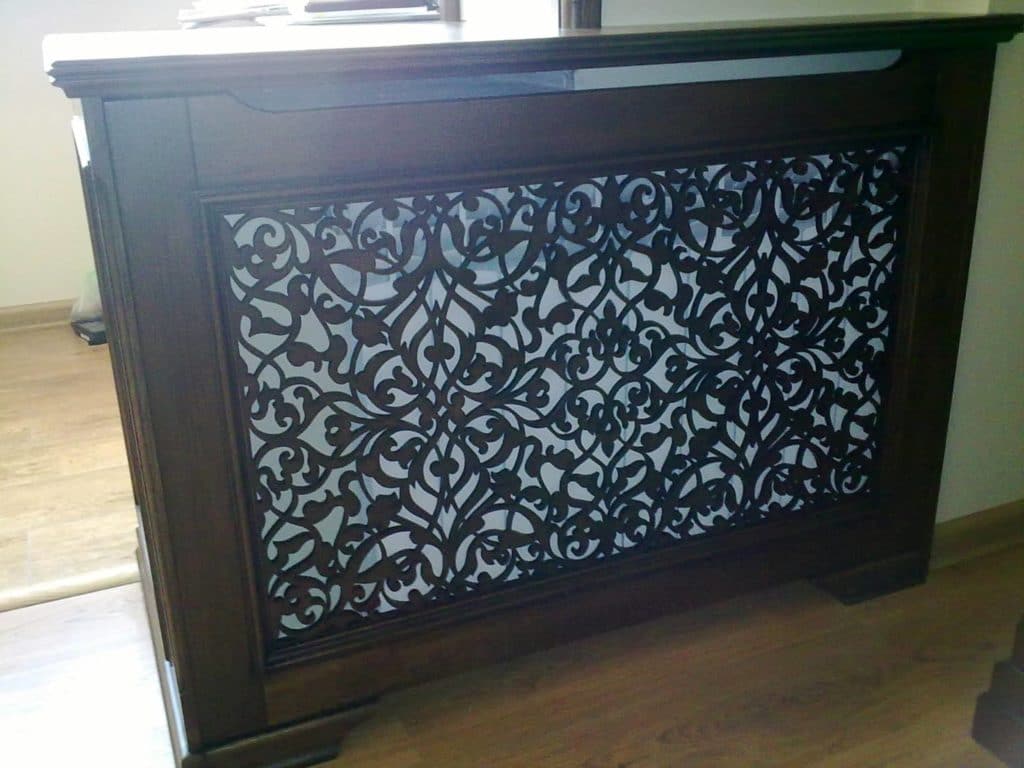 Для изготовления декоративных решеток для радиаторов используются жаростойкие и натуральные материалы: металл, МДФ, дерево, стекло, пластик.