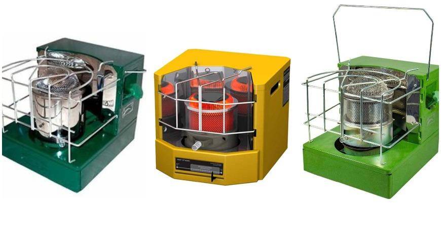 По сути, это современный вариант керосинки, которой пользовались наши прабабушки. Устройство работает на керосине или дизельном топливе, которое заливается во встроенный бак, и может использоваться для приготовления пищи. Мощность таких обогревателей – от 1,5 до 3 кВт, вес – до 6 кг, есть переносные компактные модели, по форме действительно похожие на керосинку. Ассортимент таких обогревателей невелик, цена – от 3 до 5 тыс. рублей.