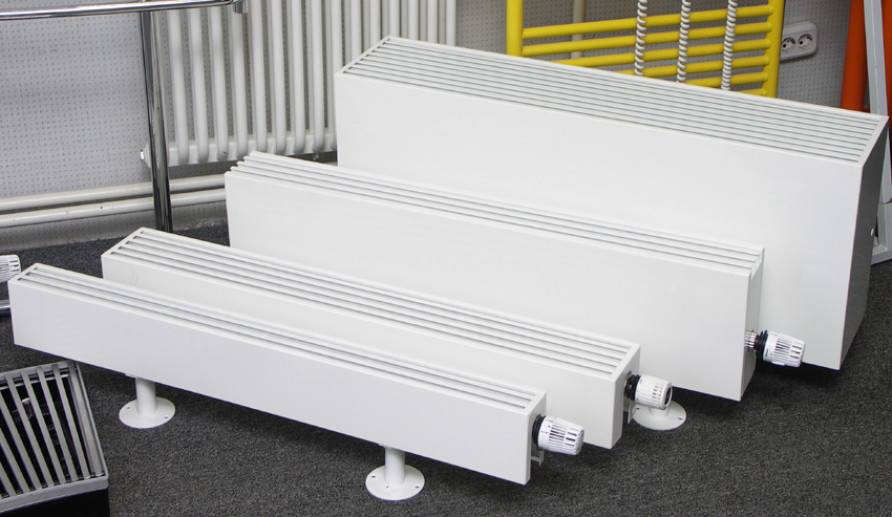 Настенные модели имеют высоту порядка 45 см, а напольные – максимум 20 см. Также узкие и продолговатые напольные радиаторы, обладают большим КПД за счет того, что теплообмен со средой происходит по всей их площади.