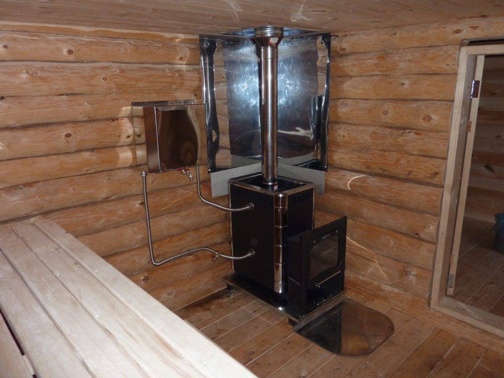 В банных финских дровяных моделях с внедрённой ёмкостью для воды есть такая особенность: стенки этой ёмкости задевает горящий огонь. Так происходит стремительное нагревание воды. Баки электрического оборудования отличаются по способу монтажа. Одни версии можно монтировать сверху топки, другие – снизу.