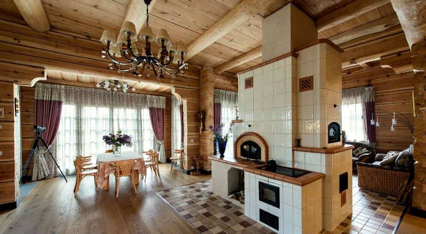 • Если остальных источников тепла, помимо камеры сгорания, нет, а загородный дом предназначается для регулярного проживания, то кроме мощности тепла с запасом, следует добавить большой коэффициэнт полезного действия и теплонакопительную отделку. Главные задачи — сохранение теплоты получившейся от дров и возможность пореже подкидывать дрова. Прекрасным вариантом будет массивная печь-камин.