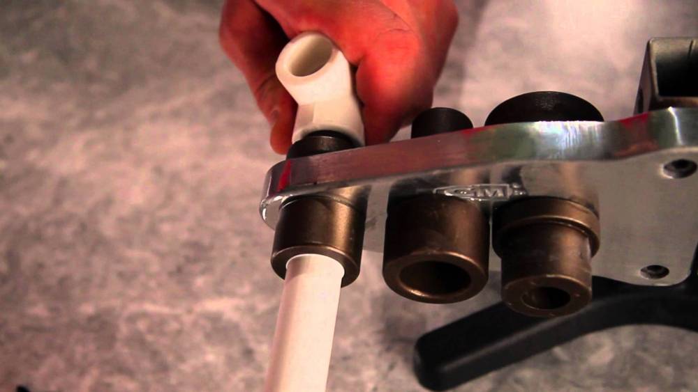 - Перед монтажом необходимо несколько расширить сечение края трубы, для этого в нее вставляется специальный расширитель (для определенного диаметра труб применяются насадки соответствующего размера).
