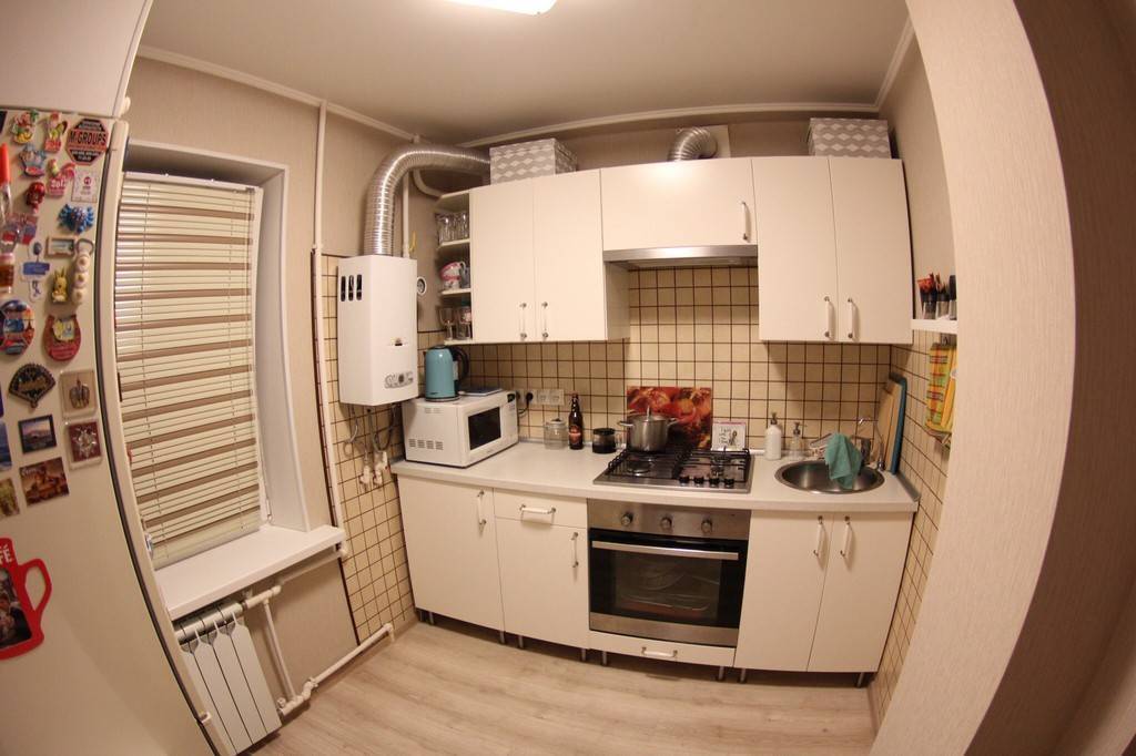 Компактная линейная планировка кухни в хрущевке