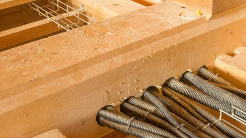 В обязательном порядке рекомендуется использовать гофру для проводки внутри деревянного строения.