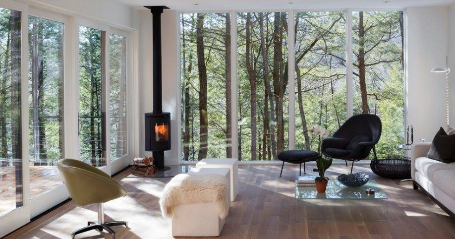 Негативно действовать на производительность каминов в интерьерах будут сквозняки. Это предупреждение к расположению очагов в зонах, прилегающих к дверным проемам, оконным конструкциям, лестницам. Данные правила не касаются фальш-каминов в интерьере и моделей с закрытыми топками.