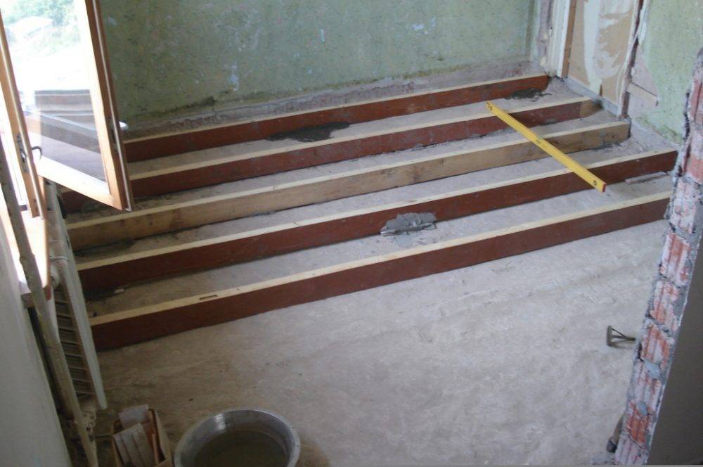 В случае, если предполагается полный демонтаж деревянного пола и устройство бетонной стяжки, для последующей отделки декоративным покрытием (плиткой, ламинатом), следует позаботиться о маяках. Без правильно выставленных направляющих не получить ровной поверхности, необходимой для отделки напольным покрытием. Слой сухого керамзита проливают цементным молочком для закрепления гранул. После затвердения молочка поверхность выравнивают по маякам цементно-песчаным раствором.