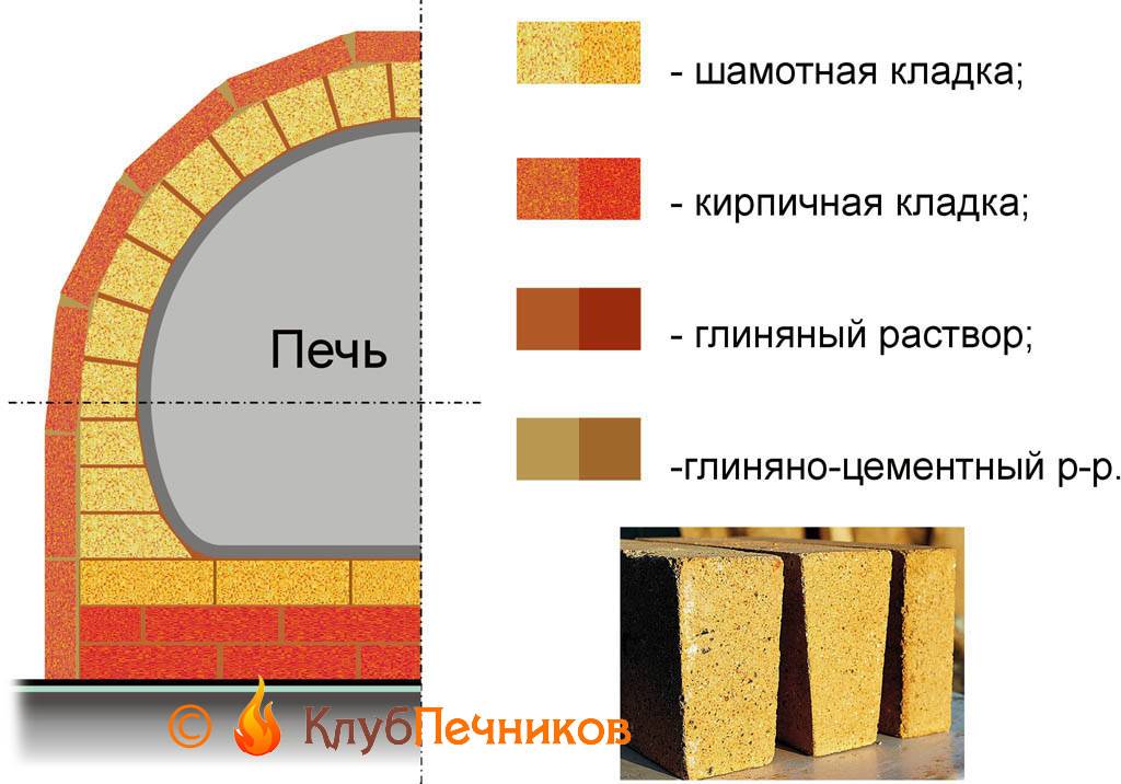 Не меньшую роль в надежности будущей печи играет связующее вещество – кладочный раствор. Привычная смесь цемента и песка для этого точно не подойдет. Застывший бетон не выдержит температурных колебаний, кладка очень быстро растрескается. Тут надо использовать песок и глину.