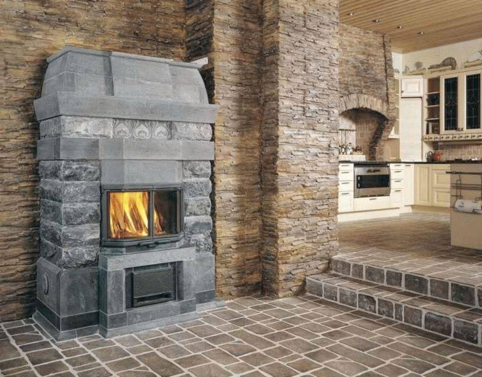 Цвет финишной отделки также имеет значение. Когда камин призван в первую очередь обогревать помещение, а не украшать его, предпочтительны максимально темные матовые тона. Чем более фактурной, рельефной выполняется поверхность, тем сильнее теплоотдача, а значит выше температура в помещении с такой печкой.