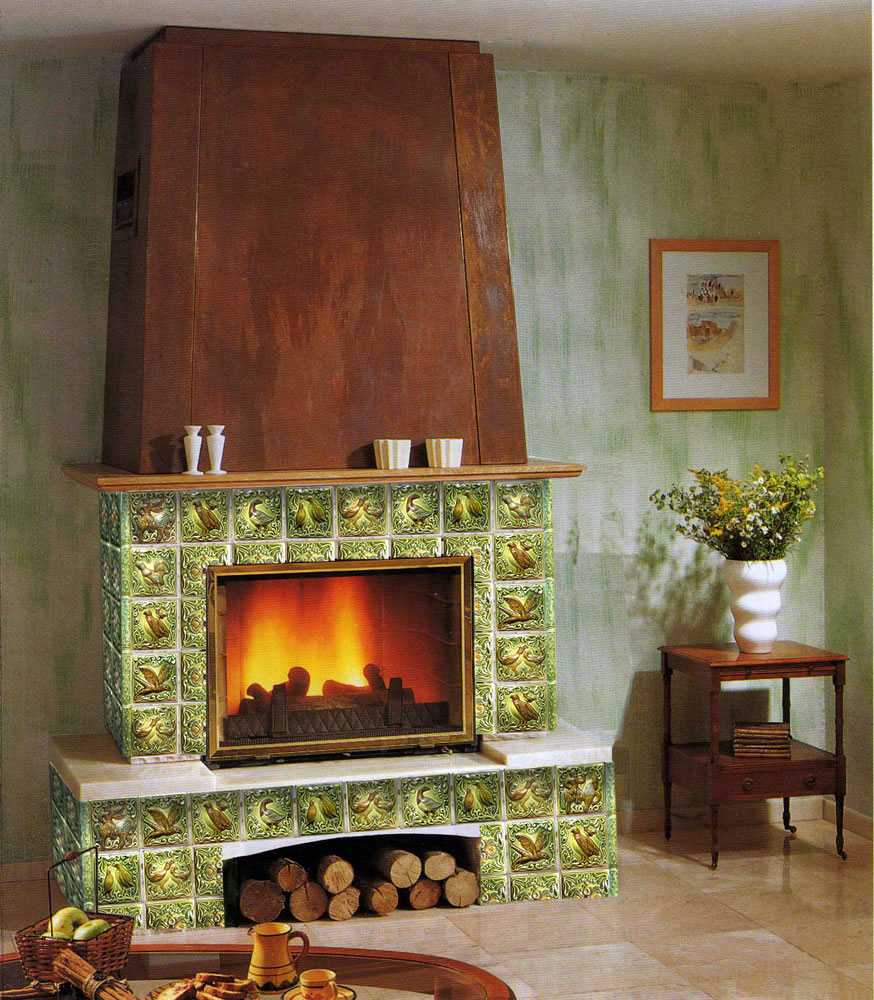 Не всем доступен такой вид отделки, как изразцы, но его можно заменить на цветную майолику или изразцовую плоскую плитку, положив их по описанной выше технологии. Внешний вид такого камина не будет отличаться от изразцов, но укладка ее значительно проще и дешевле.