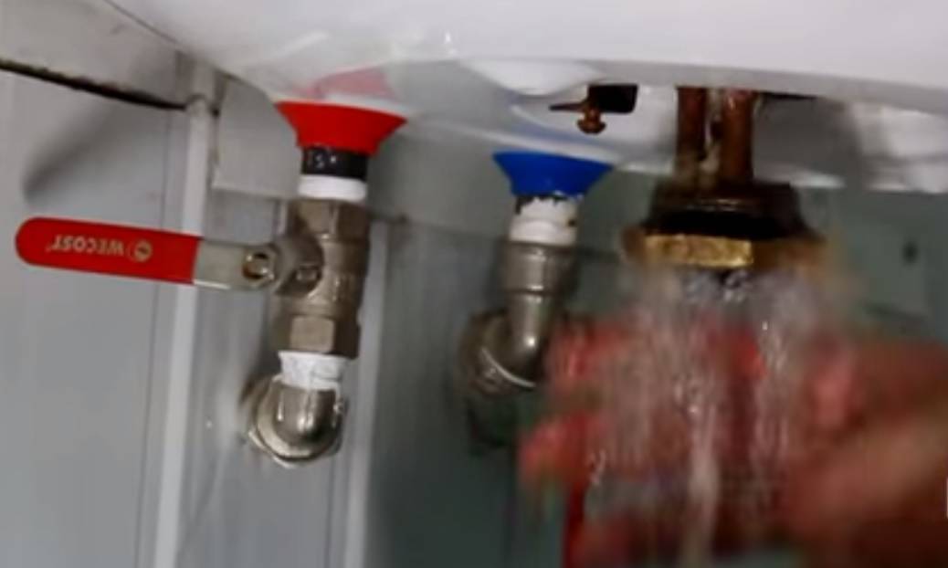 Приступая к разборке любого водонагревателя, первостепенной задачей является слив воды. Чтобы слить воду из бака, необходимо перекрыть вентили горячей и холодной воды.