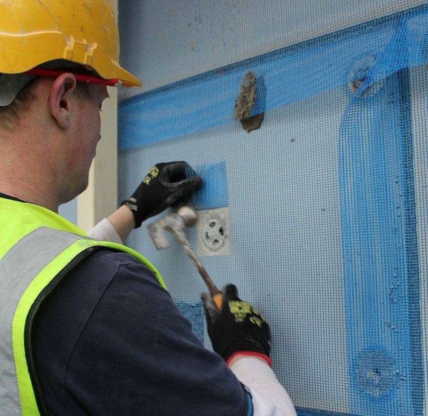 - Стены чистятся от мусора. Поверхность должна быть полностью выровнена. Затем поверхность обрабатывается антисептическим раствором.