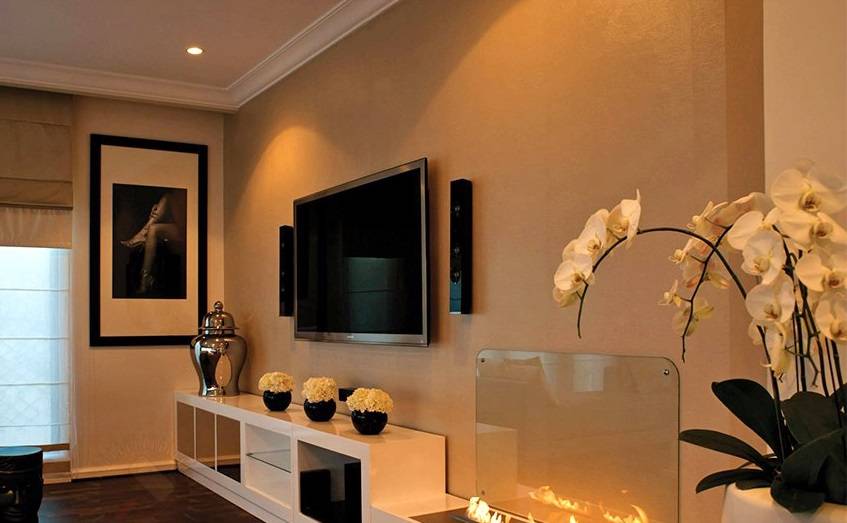 Биокамин настенного типа стильно смотрится в интерьере. Не занимает дополнительное место в помещении