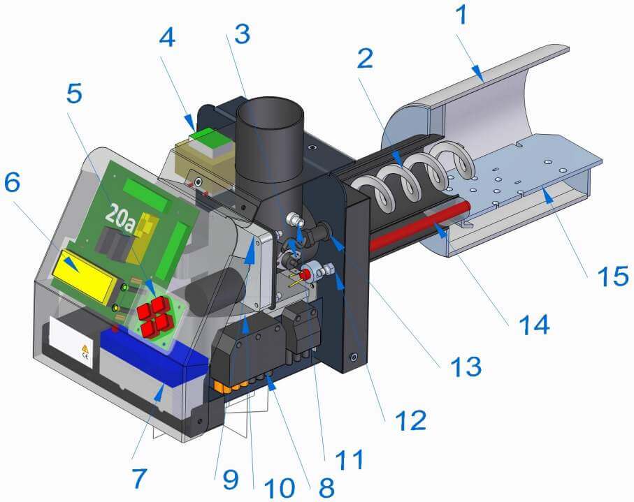 Большинство пеллетных горелок предусматривает наличие следующих модулей: