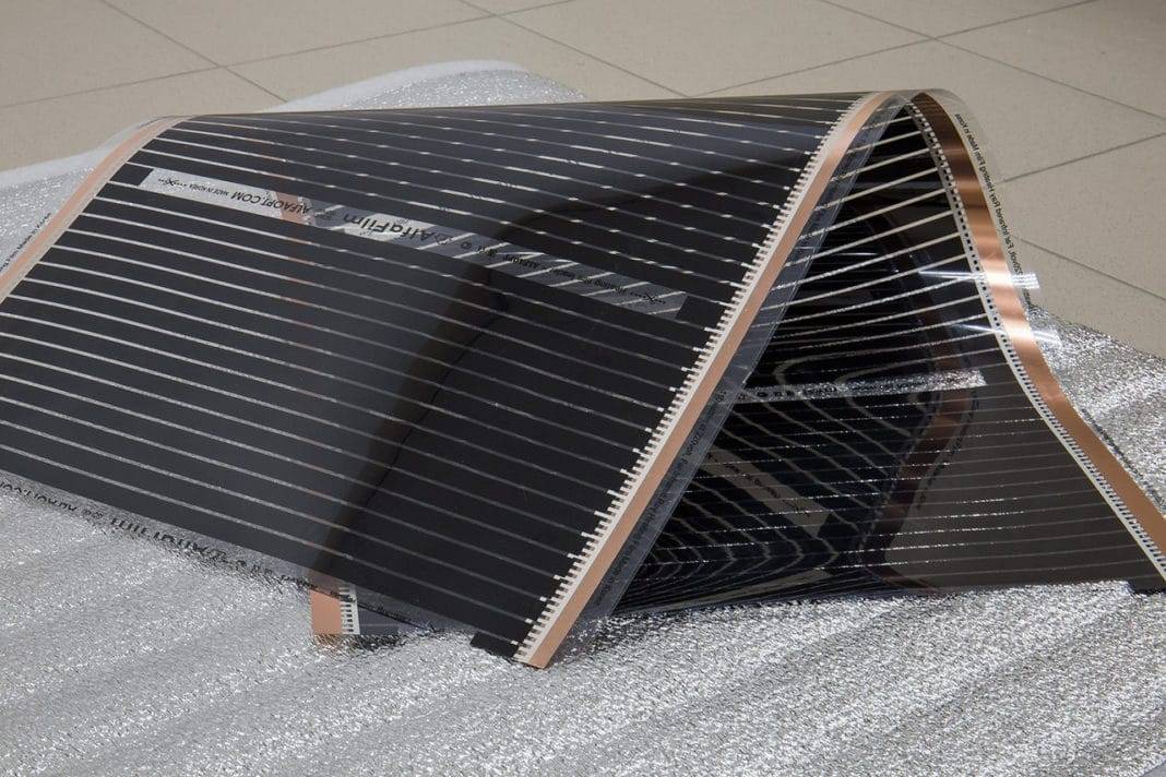 инфракрасные — плёнка с инфракрасными пластинами внутри, которые нагреваются при подаче энергии, самое простое сооружение в плане самостоятельного монтажа;