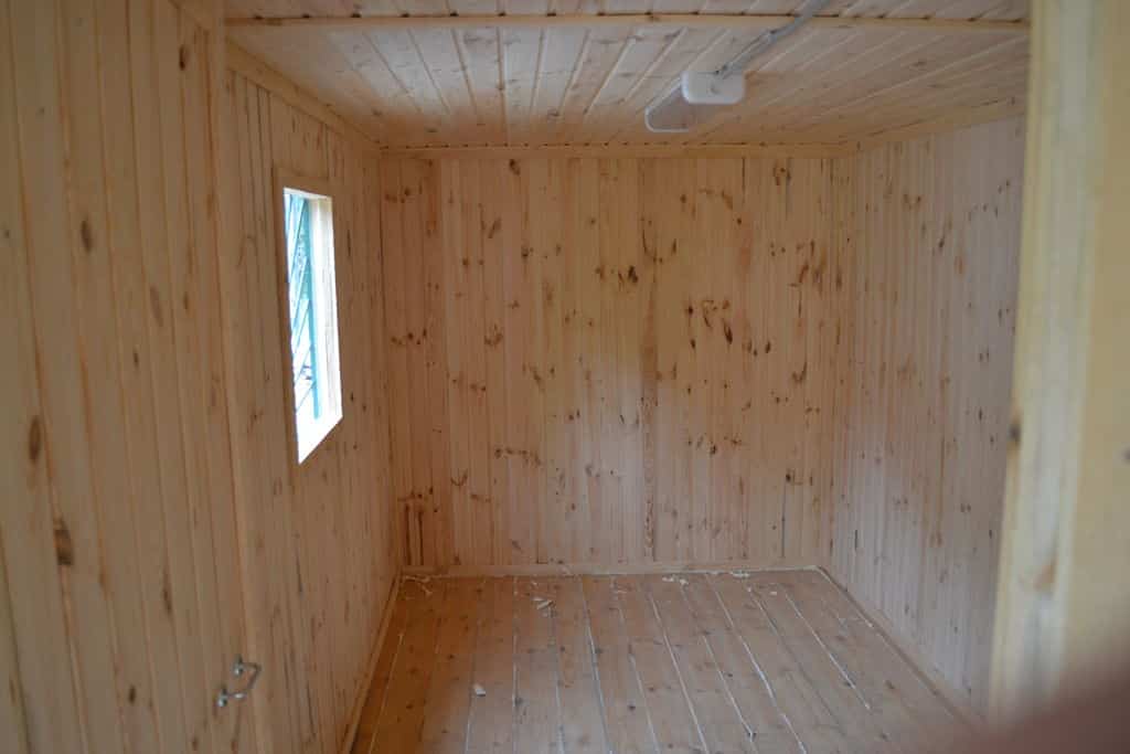 - на готовый каркас бытовки монтируется наружная обшивка из металлических листов или деревянных материалов;