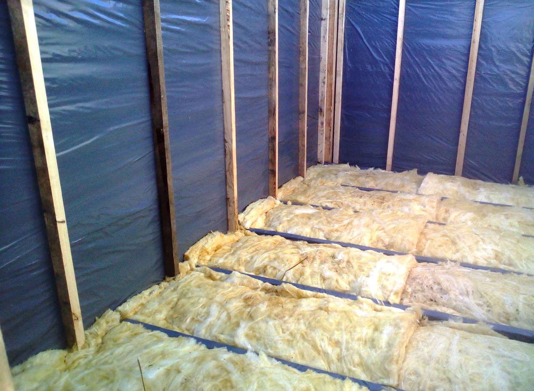- размещения утеплителя между стенами (при каркасных бытовках).