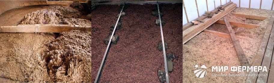 - Его выкладывают на пол слоем до 10 см и дают высохнуть. Как правило, это занимает несколько недель, но в результате получается теплый пол, который не впитывает влагу и фекалии.