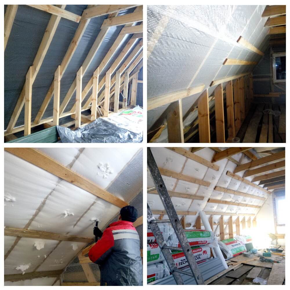 Примерная последовательность проведения теплоизоляционных работ скатной крыши следующая: