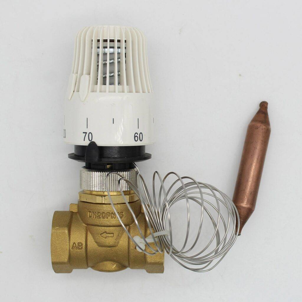 Клапан с термоголовкой предназначен для поддержания заданной температуры в автономном режиме. Устройство работает по принципу сжатия-расширения газа или жидкости в зависимости от окружающей среды. Терморегулятор может быть встроенным или размещаться дистанционно.