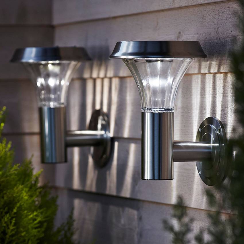 - настенные (фасадные, экстерьерные) – ночные фонарики, напоминающие бра. Монтаж осуществляется накладным способом (как по выступающей методике, так и по встроенной). Крепятся такие светильники в основном на стены, арки, лестницы или любые другие вертикальные поверхности, будь то забор, беседка или козырек над дверным проемом;