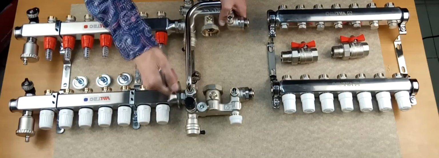 Распределительный коллектор пола оснащен расходомерами, а также клапанами, микрометрическими и балансировочными. Последние соединены с напорным (подающим), а также обратным коллектором.