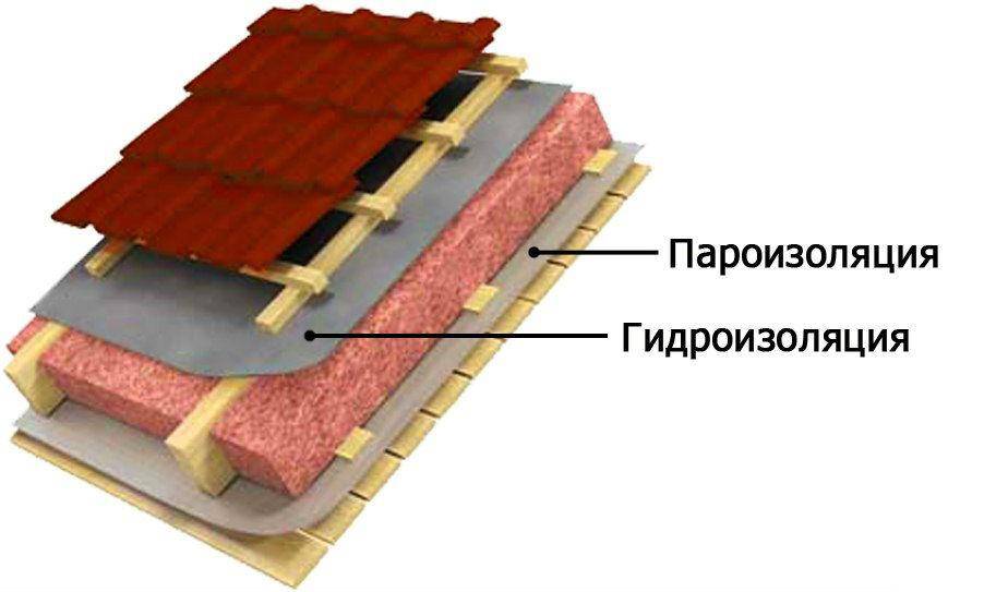 Как и следует из названия, гидроизоляция защищает утеплитель от воды, поступающей сверху — как то дождь, снег, или просто сконденсировавшаяся на кровле влага. Гидроизоляция также обязательна должна присутствовать в каждой кровле.