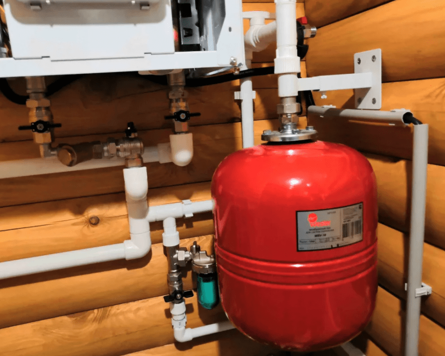 Расширительный бак мембранного типа размещают перед циркуляционным насосом, на обратной стороне всей системы.