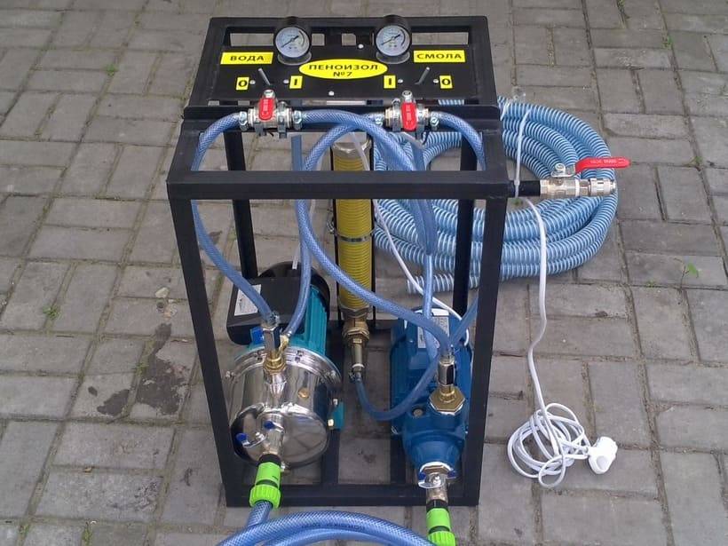 Насос, предназначенный для перекачки пены к месту самостоятельного утепления тоже лучше купить плунжерный. Пена формируется при низком давлении в специальном генераторе. При этом эффективней двойное вспенивание, на выходе получается полусухой пеноизол, так он не станет просто вытекать из полости. Устанавливают один насос для подачи смолы и второй для перекачки пены. по шлангу.