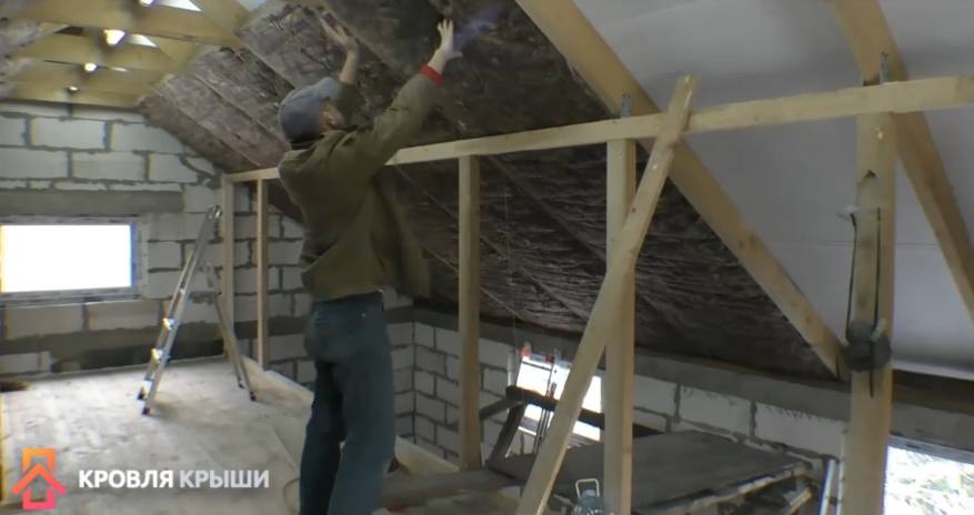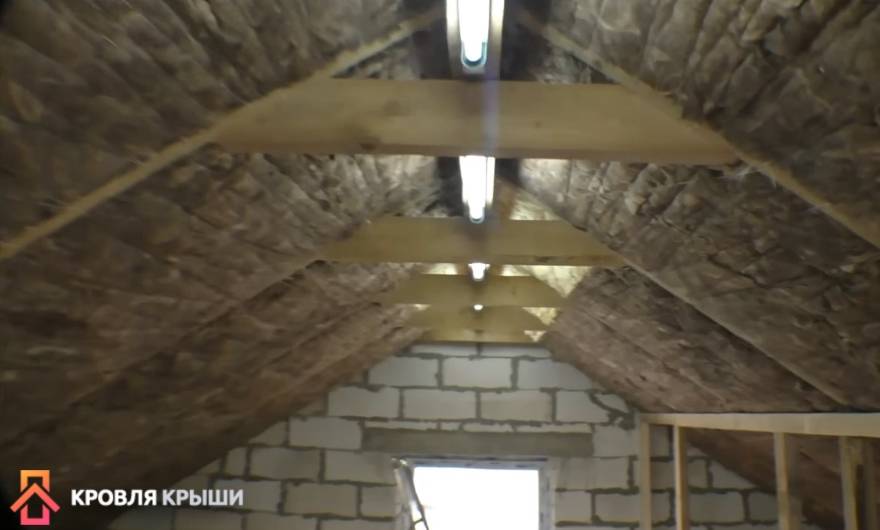 Особенно это важно для мансарды. Каркас усиливают с помощью поперечин, которые и будут фиксировать теплоизоляционный элемент;