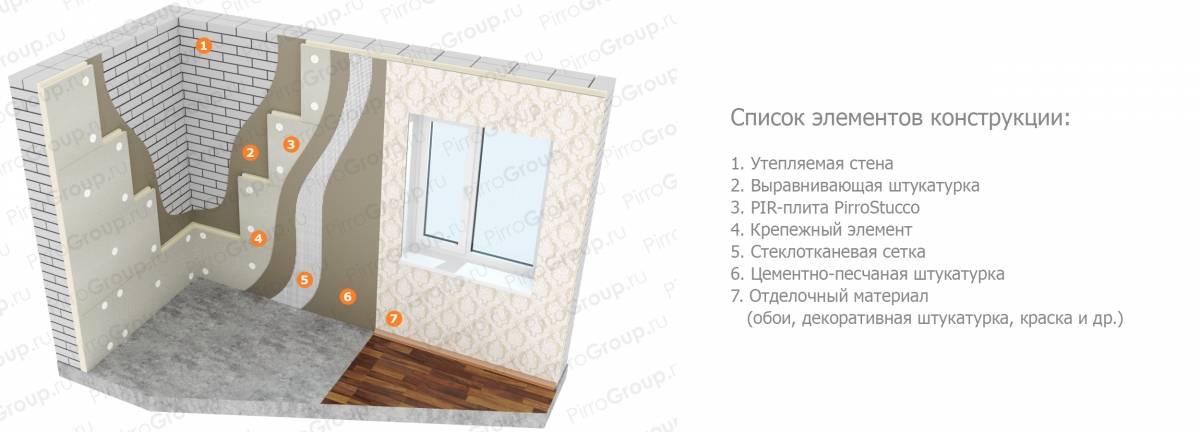 Самый очевидный «побочный эффект» утепления стен изнутри – сокращение полезной площади помещения. Чтобы свести его к минимуму, рекомендуется использовать изделия марки PirroСтена c обкладкой из стеклохолста, специально приспособленной для нанесения штукатурных смесей, включая декоративные покрытия, непосредственно на утеплитель.