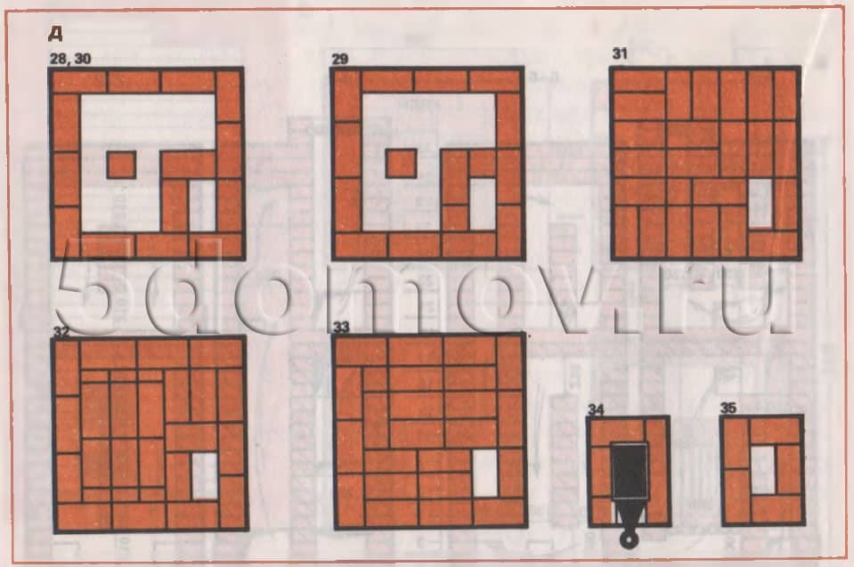 Рис. 3. Продолжение д — кладка 28—35 рядов
