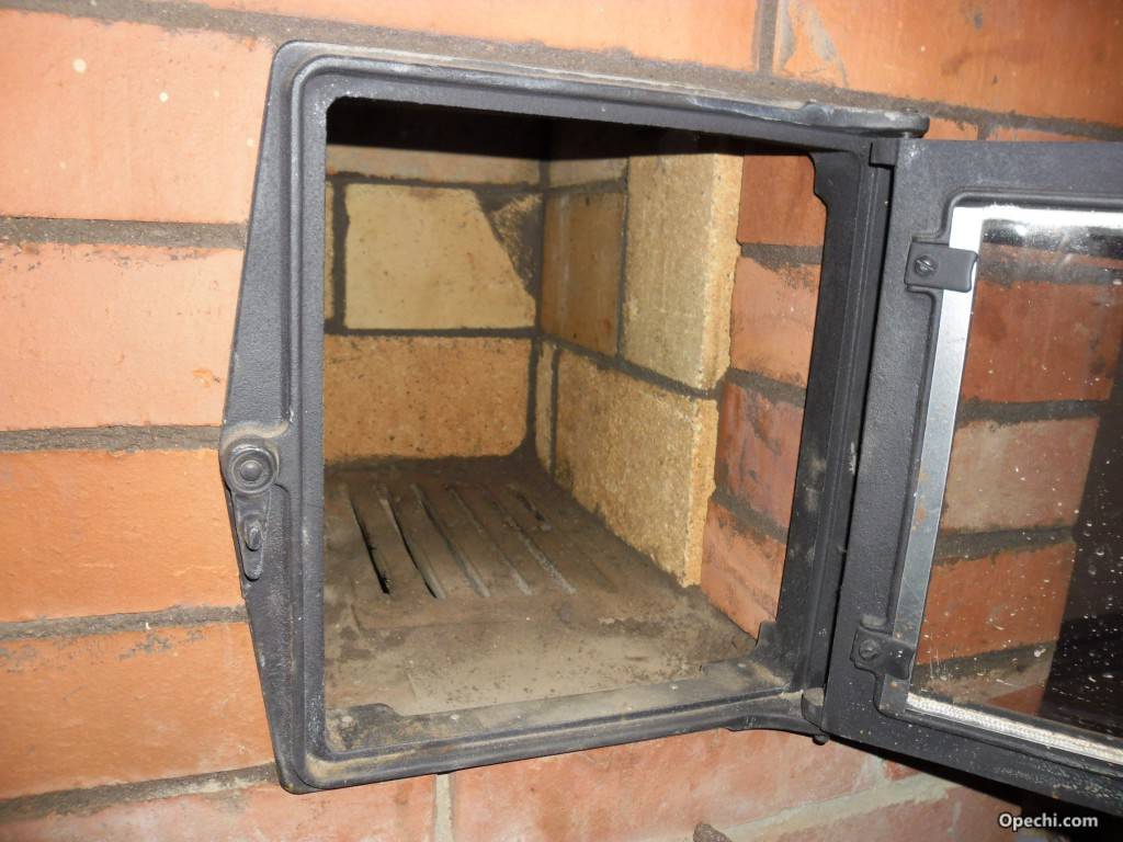 Трещины в кладке от перепадов температур затирают раствором. Потрескавшийся кирпич из конструкции вынимают, расчищают место, смачивают его и укладывают подходящий кирпич обратно. Если крепление дверцы непрочно, её снимают, разобрав швы рядом, при необходимости заменяют кирпичные блоки на новые.