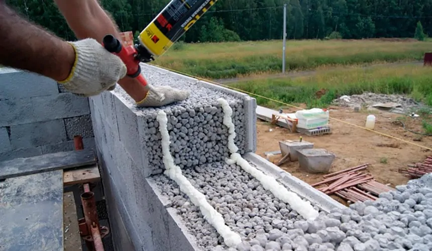 Заполнить все пустоты и возникшие трещины позволит заливка из жидкого пенобетона, который защитит конструкцию от появления влаги и последующего гниения. Между двумя слоями кирпичной кладки оставляют 120 мм. При этом плотность пенобетона должна составлять 250 кг/м.куб. Материал имеет низкую цену и способен уменьшить затраты при строительстве. Он способен аккумулировать тепло, обладает хорошей паропроницаемостью и морозостойкостью. Пенобетон огнестойкий и обеспечивает прекрасную звукоизоляцию жилища.