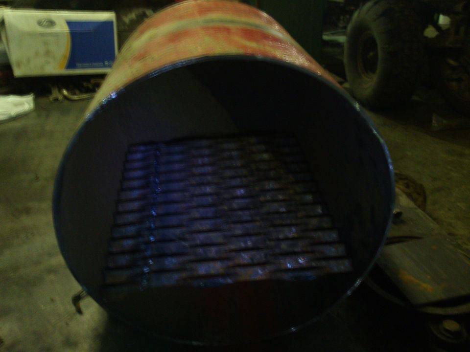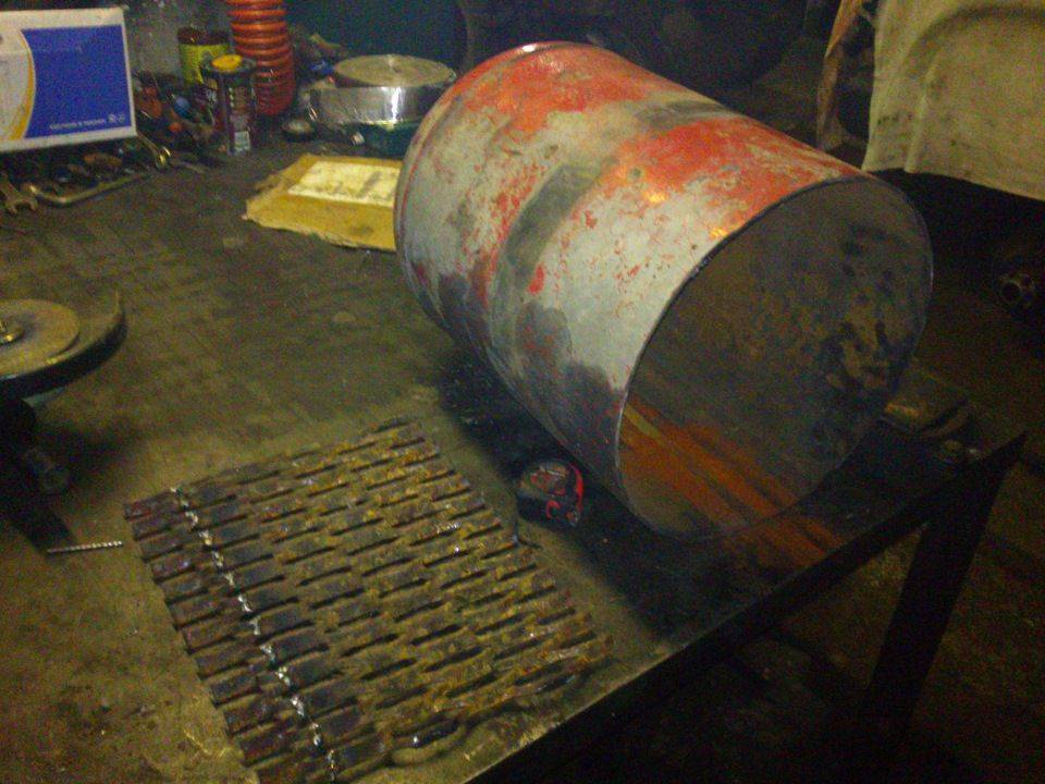 - Затем к тыльной стороне круга приварить четыре отрезка швеллера в крестообразном порядке. Они образуют своеобразные каналы, по которым в топочную камеру будет поступать воздух.
