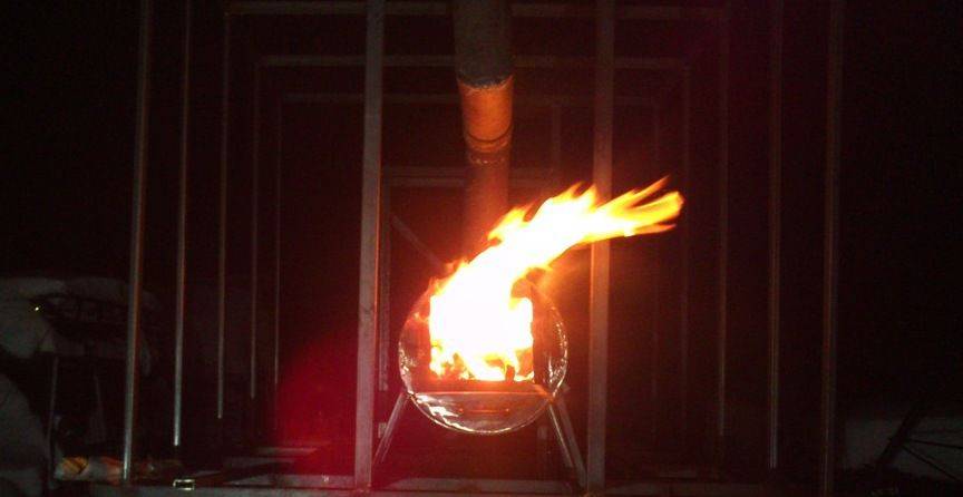 - Через отверстие, в которое происходит залив топлива, производится и его розжиг любым удобным для вас способом. Некоторые используют паяльные лампы.