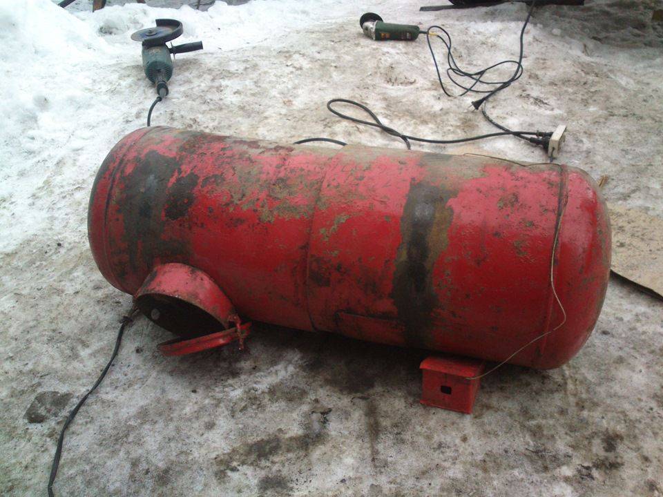 Для самостоятельного изготовления печи «бубафоня» лучше всего подойдёт использованный газовый баллон объёмом 50 л. Порядок выполнения работ следующий: